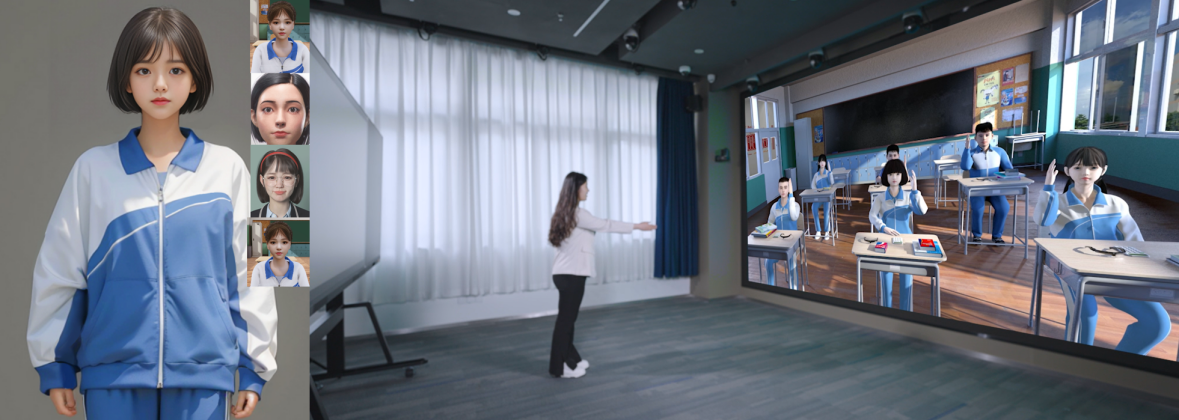 教育元空间的核心是大模型驱动的数字虚拟员工。通过开发具备多种性格和认知特点的数字人角色,用于模拟真实的员工行为和复杂的课堂交互场景。其关键技术包括大模型驱动的自然语言理解与生成、多模态数据实时采集与分析、情感识别与反馈机制、虚拟现实技术及智能互动算法、语音识别与合成、数字人的3D建模等。目前已经模拟了小学数学、高中数学、初中地理、初中物理、初中化学、初中信息技术课等具体学科课堂教学场景下的数字人认知模型。