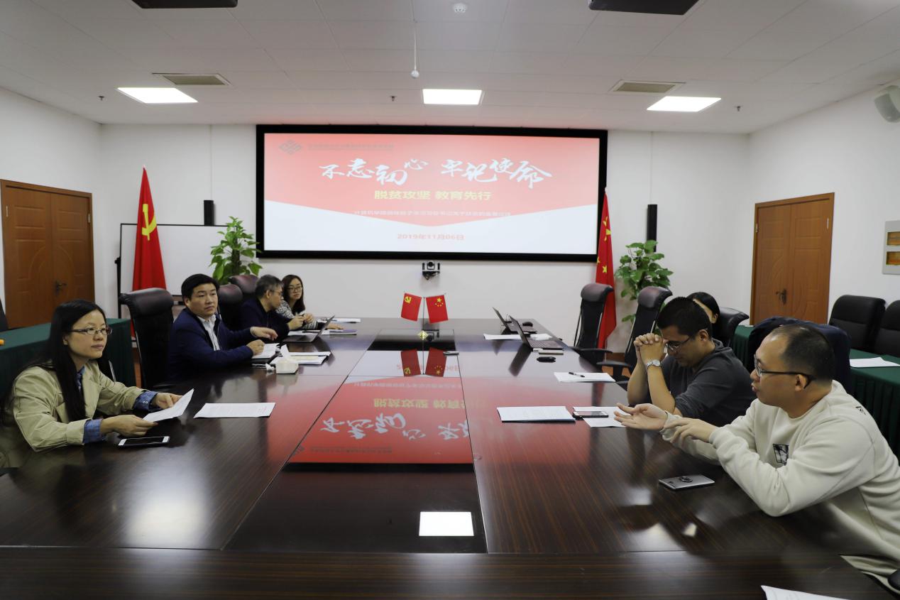 党委书记王长波结合在江西的见闻以及CCF的扶贫做法做分享,他指出,扶贫攻坚,教育先行,要改“扶贫”为“扶志”,“扶贫”为“扶智”。作为高校教师,如何发挥科技和教育优势,以科技支持经济,需要我们发挥优势精准对接,为社会实在服务。扶贫工作做好了,对教师对员工也是一种精神的洗礼和教育,是奉献社会不忘初心的一种方式。副经理(主持工作)周爱民提出,公司的员工有去贵州云南等基层一线的公司做老师,可以建立跟踪机制,资助贫困山区的孩子来华师大进行短期的训练营,开阔视野,在扶贫的同时也做好了员工联络工作。其他班子成员都以自身经历体会为出发点,谈到教育扶贫与建立长效机制的重要性。