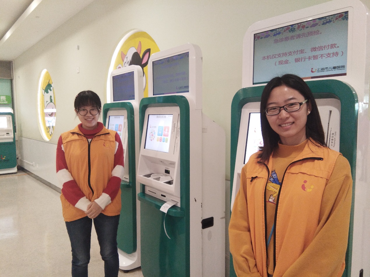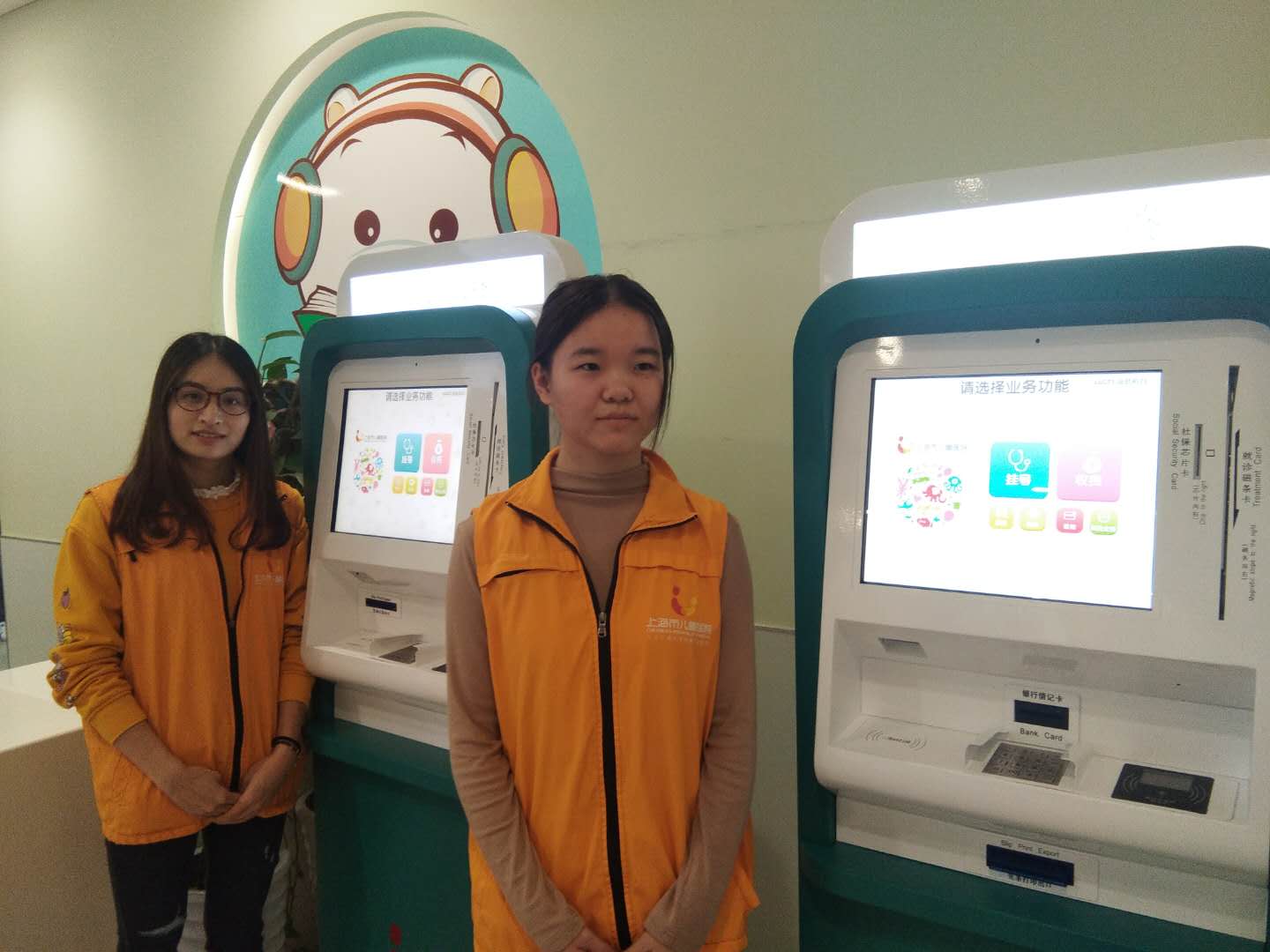 大家来到医院大厅的便民服务点,在儿童医院沈雯菁老师的指导下学习了自助门诊挂号机的使用,特别是针对已经在手机上预约的病患儿家属如何在现场签到取号,怎么打印发票等场景进行了细致的学习。