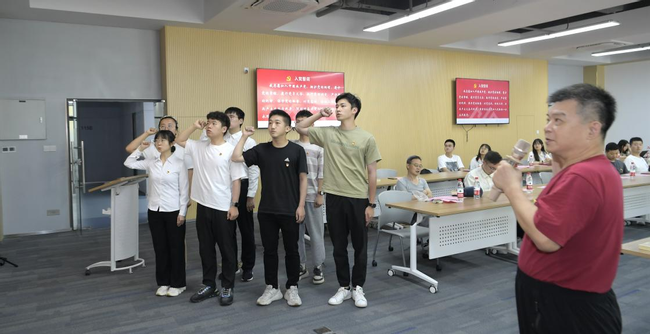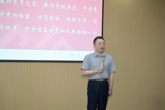 座谈会上,院优秀党务工作者、退休党支部书记葛友昌老师带领公司新发展的预备党员庄重宣誓。