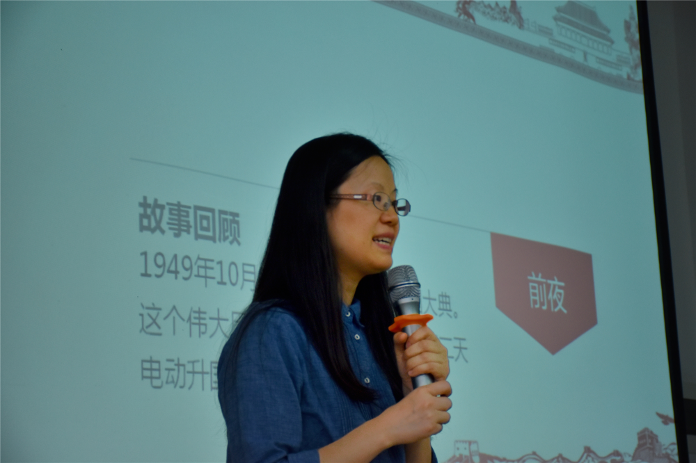陈蕾老师带我们一起回忆了“我和我的祖国”的七个小故事的情节,并且分析了每个小故事传达的正能量。主要包括以下几种正能量:个人应该以大局为重、牺牲奉献精神、英雄担当、恪尽职守、同理感恩、以身作则、甘当人梯等。在陈蕾老师声情并茂地讲解下,共和国成长中那些最为刻骨铭心的事件在我们面前活灵活现地展开。这是中国人的记忆和感动,是七十载光辉岁月里最为美好的印记。陈蕾老师强调:“我们都是青年有美好的前程。为什么要强调初心呢? 我们大国已然崛起,我们作为共产党员,要为人民谋福祉,这个初心是不能变的。