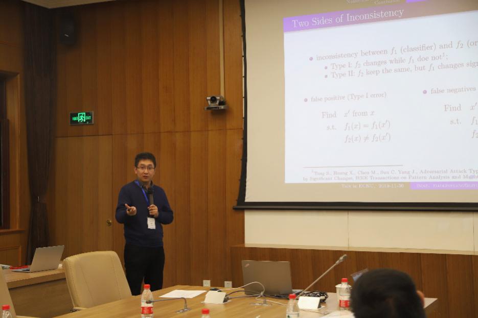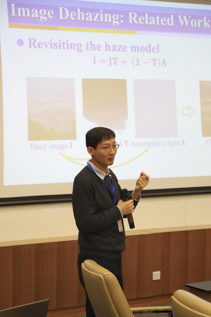 会上,香港大学Michael Ng教授、南京理工大学潘金山教授、哈尔滨工业大学谷延锋教授、北京交通大学景丽萍教授、上海交通大学黄晓霖副教授、厦门大学纪荣嵘教授、香港中文大学曾铁勇副教授、天津大学段玉萍教授、上海交通大学张小群教授、武汉大学袁强强教授以及3044AM永利方发明副教授为大家做了11场不同主题的精彩报告。本次研讨会共分为四个部分展开,每个部分包含2-3场报告和提问交流环节。报告内容覆盖变分法、离散曲率和物理成像模型等基于数学方法的图像重建,基于深度学习的对抗攻击、图像复原、磁共振图像重建和病理识别、遥感影像重建及分类等问题,紧致化计算机视觉系统,多源异构高维数据表示学习等图像处理领域的前沿发展方向。