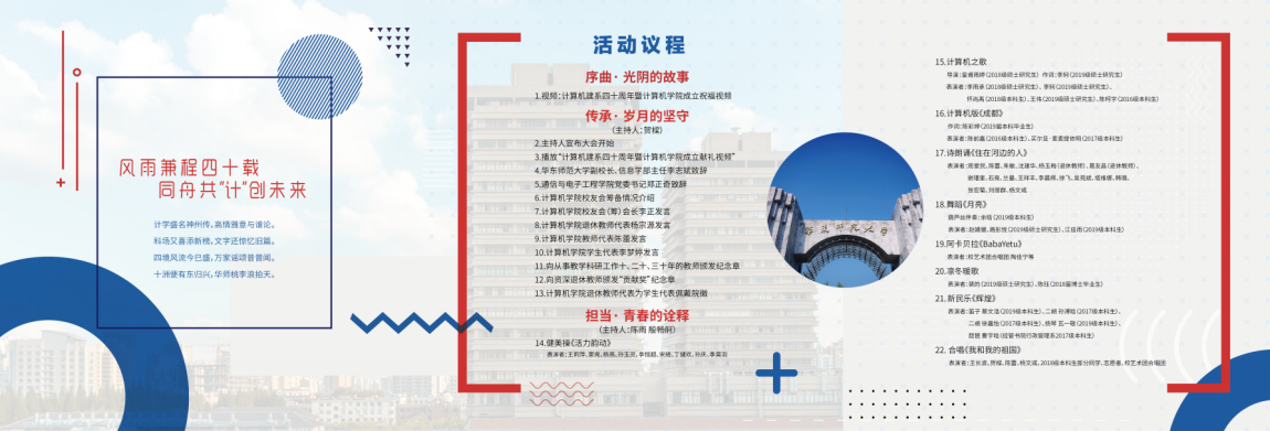 公司工会积极配合公司周年庆活动开展,工会主席谢瑾奎参与筹划计算机建系40周年暨3044AM永利成立庆祝联欢活动,工会委员杨文彧作为本次联欢活动的导演,积极联络各方保证活动顺利开展,工会委员刘丽群积极参与活动展板设计和视频制作。在公司全体老师的大力支持下,公司教职工为参会嘉宾呈现了《活力韵动》健美操表演, 诗朗诵《住在河边的人》以及合唱《我和我的祖国》等节目,师生同乐为计算机系40岁生日献礼,活动现场气氛活跃,反响热烈。