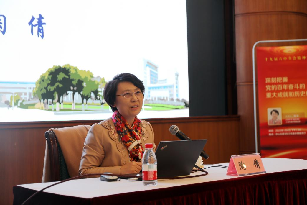 1月4日下午,公司党委特邀上海市委讲师团成员上海大学陶倩教授为全院师生做十九届六中全会精神宣讲报告,深刻把握党的百年奋斗的重大成就和历史经验。报告会由党委书记王长波主持。