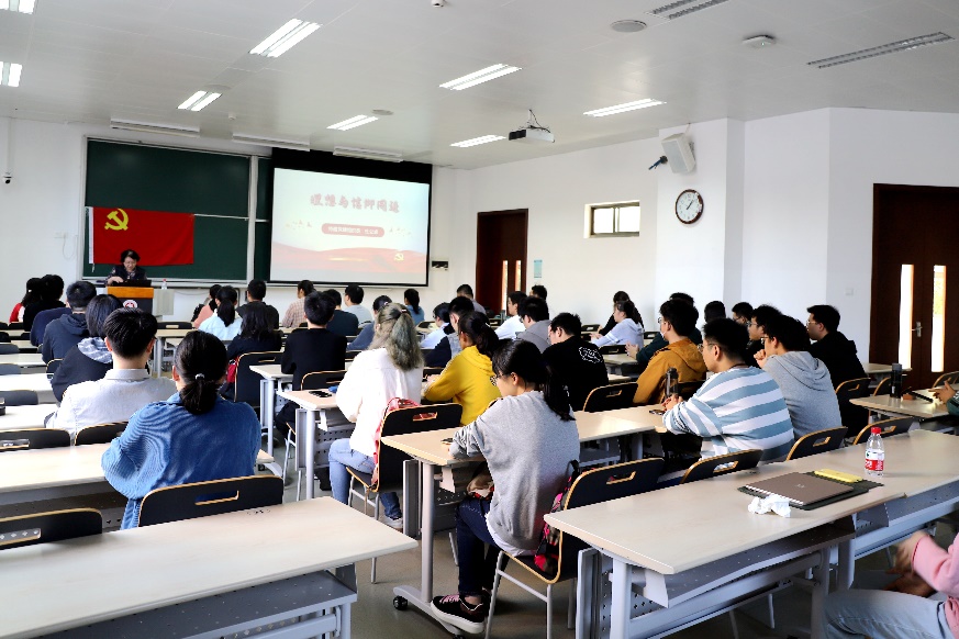 11月18日“理想信念教育”专题报告,本次活动伊始,特邀党建组织员杜公卓老师从四史的由来展开并进行了介绍,杜老师分别从战争年代和和平建设时期介绍了了共产党员的模范作用。活动最后,杜老师强调,青年学子应该努力学习本领,重视综合素质的培养,身为一名全面发展的人才。