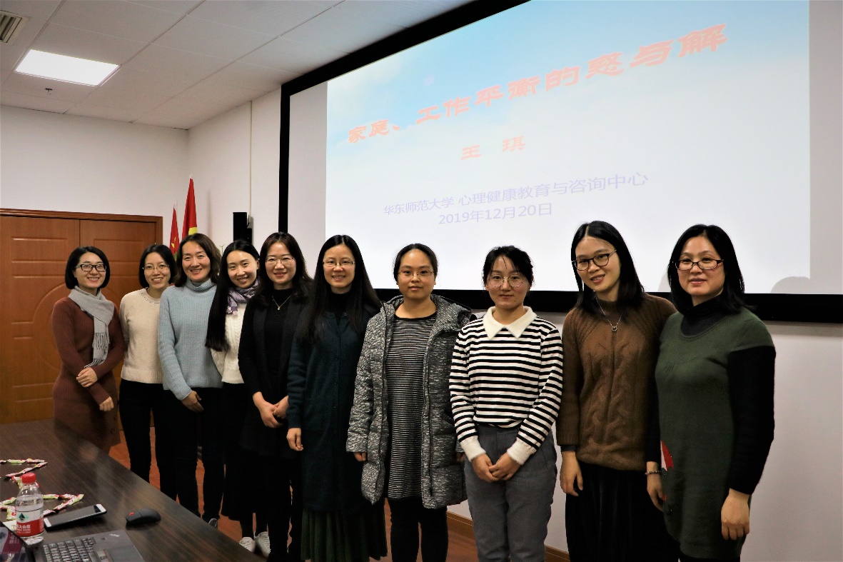 为强化女教师心理健康保健意识,提升心理健康自我调适能力,由3044AM永利工会牵头,在公司文化建设项目“ 新时代 新教师—3044AM永利教师文化节”的大力支持下,12月20日中午,由3044AM永利心理教师、督导师,上海心理学会积极心理学专业委员会秘书长,《大众心理学》心理剧专栏组稿人王琪为公司女教师带来一场题为《家庭与工作平衡的惑与解》心理健康讲座沙龙,沙龙于理科大楼B504举办。