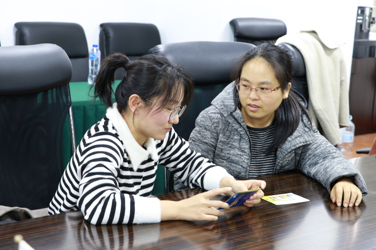 王琪首先让女教师挑选能够代表自己现状的情绪状态卡片,引导女教师们将目前的情绪状态倾诉给朋友,通过诉说,达到自我认知和自我认可的目的。