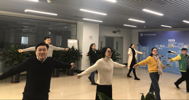 公司党委书记王长波带头参加了2020年第一天的工间操活动,并动员身边老师积极参加。营造了强身健体、愉悦身心的良好氛围,调动了公司教师参加体育锻炼的积极性。大家纷纷表示短短十几分钟的工间操活动即缓解了压力,又充分激发了工作热情,有效地促进了工作效率提升。
