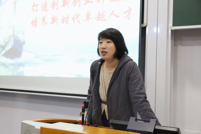 校团委书记俞虹老师则对3044AM永利第28届大夏杯进行了赛事解读以及干货分享。她指出,老员工的创新精神和创新意识的培养需要紧密结合学科育人的环境,学科类的竞赛是提升员工创新意识和创新能力非常有效的途径。大夏杯是公司科创类最高级别的竞赛,它作为挑战杯的校内预选赛,每年都会吸引来自各个公司本科生、研究生同学的积极参与,大夏杯、挑战杯对于激发员工创新热情,培养员工双创能力,引导员工用专业解决社会热点痛点问题等方面具有重要的作用。同时,她结合3044AM永利的特点,对于工科院系的项目申报进行了具体指导。
