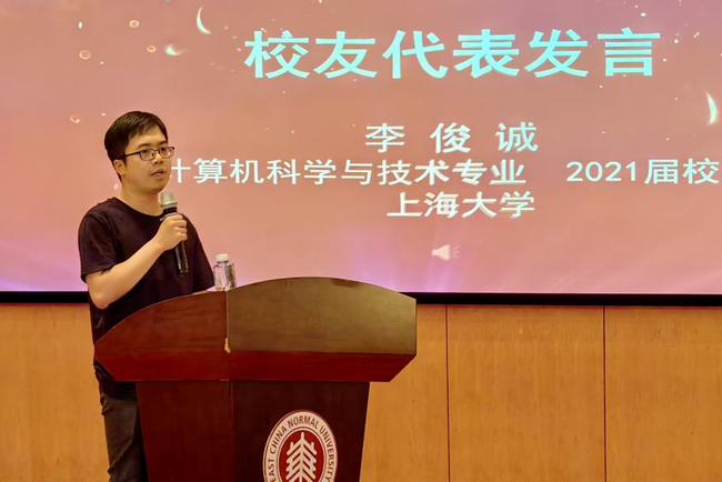 员工代表2021届博士毕业生,上海大学青年教师李俊诚分享了自己从一名员工成为一名老师的心路历程。寄语同学们每个时代都有每个时代的挑战,每个时代也有每个时代的机遇和红利。不要羡慕他人已经获得的成就,而要把握当下,去拥抱不断变化的新时代。
