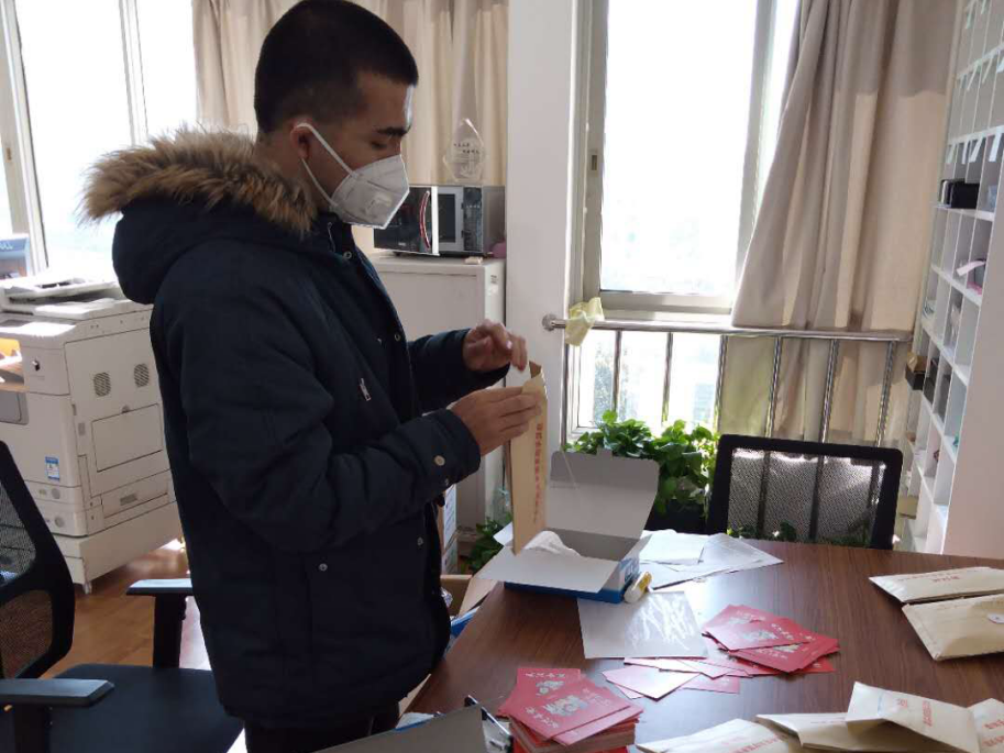 17级本科生刘俊豪、鲁梦洁,19级专业硕士姚舜、徐树英,19级学术硕士秦锦玉等同学积极为家乡抗“疫”贡献力量,参与志愿服务,流动宣传、登记核查信息。作为留校生,17级本科生阿布都赛米·阿布力肯木协助勤助老师为留校生分发口罩、打包口罩和贺卡,为在湖北的公司员工寄出了口罩约2000枚。