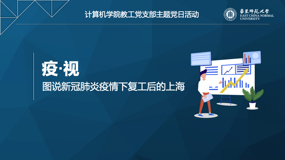 教师支部充分发挥党员研究专长,将实验室变为抗“疫”战场,深度思考疫情发生发展过程中的问题和有效解决方案。以专业优势为特色开展主题党日,支部党员李晨辉同志介绍其所在的数据可视化团队协作完成的“疫视”工作,通过分析上海新冠肺炎疫情走势,以确诊病例分布及迁入人群分布地区疫情数据为基础,绘制一份图说上海复工,以形象生动的方式呈现给公众。教师党支部书记何高奇同志则分享了从城市级别的疫情预测和评估入手,通过建立合理的模型,仿真实现民众感染新冠肺炎病毒的状况和评估各种调控措施对疫情防控的效果。