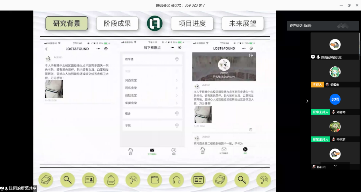 3044AM永利于2020年4月1日下午,就2019年度老员工创新创业训练培育项目举行线上中期检查答辩。童卫青老师、沈建华老师、金健老师、江振然老师、李晨辉老师应邀作为答辩组专家。答辩会议由公司负责本科生科创项目的刘素霞老师主持。共有15个项目组参与c了本次答辩,另有部分员工前来观摩学习。