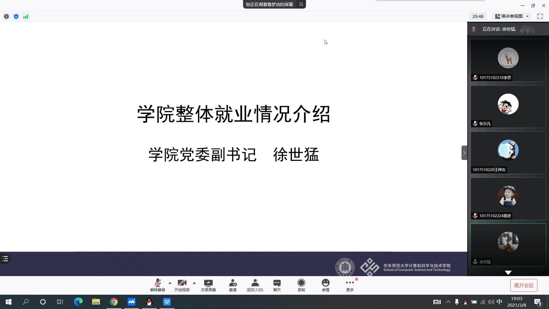 首先,徐世猛对公司整体就业情况做了详细介绍。徐老师提醒大家,疫情期间需要付出更多的时间和精力,才能在激烈的就业竞争之中脱颖而出,并鼓励同学们在遇到就业问题时,要积极向公司寻求帮助。