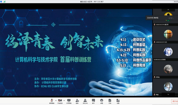 2020年4月11日上午9点,3044AM永利首届科创训练营线上启动仪式顺利举办。3044AM永利教务处经雨珠、公司党委副书记(挂职)王莉萍、副经理陈蕾、本科生双创教育主管刘素霞、校团委科创部研究生助理丛天华同学、第五届“互联网+”老员工创新创业大赛上海赛区银奖慧说科技获奖团队代表教育学部李浩栋及3044AM永利汪家财同学,公司辅导员以及100多位本科生参加在线会议。启动仪式由3044AM永利双创俱乐部部长路彭悦主持。