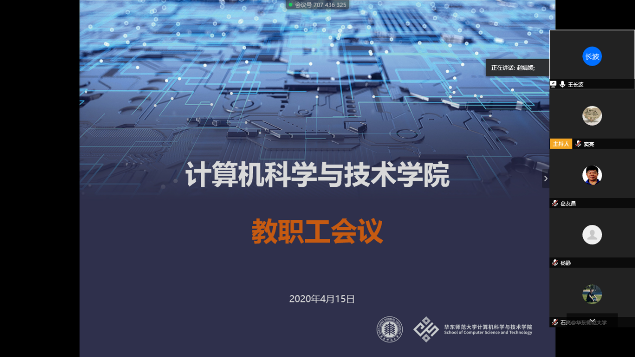 王长波书记首先对疫情期间公司的各项疫情防控安排做了说明,强调了疫情防控期间安全的重要性,号召大家发挥专业特长,充分利用线上优势,保障教学科研各项工作的有序开展。在本科教学近期工作介绍环节,陈蕾副经理详细介绍了2020级本科生培养方案的修订情况以及公司与教育信息技术系联合培养双学士学位复合人才的课程安排情况,汇报了近期本科教学以及员工创新创业方面的各项工作。接着,周爱民副经理(主持工作)介绍了2020级公司产品方案修订以及研究生论文形式审查等工作的情况,王莉萍副书记(挂职)对近期毕业生就业情况和当前疫情对就业的影响进行了说明和分析,希望教师们共同参与,更好地推进毕业生就业工作。