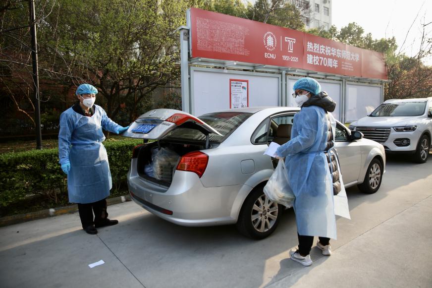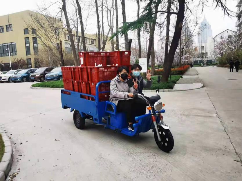 得知即将封闭管理以后,本科生林霁的创新创业团队于3月19日第一时间向在公司一线的老师和后勤员工们捐赠了一千斤的水果,因为情况紧急,后勤有保障任务,他们自己开车完成配送,并将车子借给后勤部门送餐。林霁表示,越在紧急关头越能感受爱在华师大,希望作为员工创业团队能出一份力。