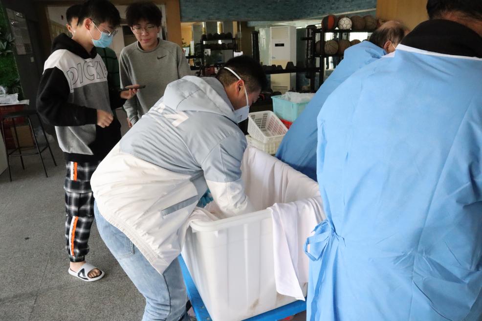 还有洗澡问题,五舍虽然有独立卫浴,但是并没有热水,所以每天都有同学来打听洗澡的问题。但是宿管阿姨、叔叔,他们要在宿舍待十几天,也不能洗澡。他们每天早中晚负责给各个楼层数好餐量,不厌其烦地与食堂沟通几乎每顿都在变化的白米饭加饭量。他们比我们更辛苦,他们能忍住不洗澡,我想我们也不该有什么怨言。