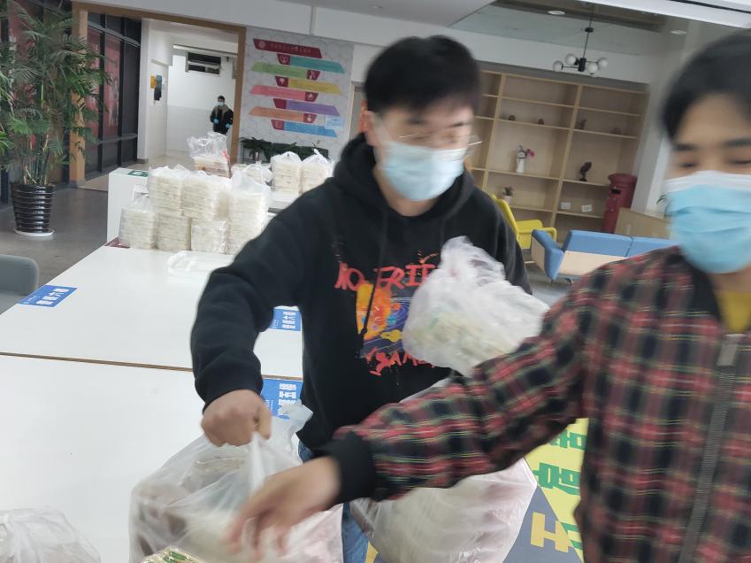 忽然被封控在宿舍,经过几日对五舍3层232人一日三餐的配送,我只想感谢,首先感谢公司给大家提供了无忧的保障,感谢老师们对同学意见及时的沟通反馈。特别感谢这几天我们党支部三位党员顾犇,刘少凡,李鑫冲锋在前,顾犇同学每天早上7点起床给大家配送早餐,午饭和晚饭的配送总会有刘少凡和李鑫同学的身影。有诸位学弟的协助,宿管们的帮助,以及3层各位同学的配合才能让我们这几日食宿无忧。由衷地感谢大家。