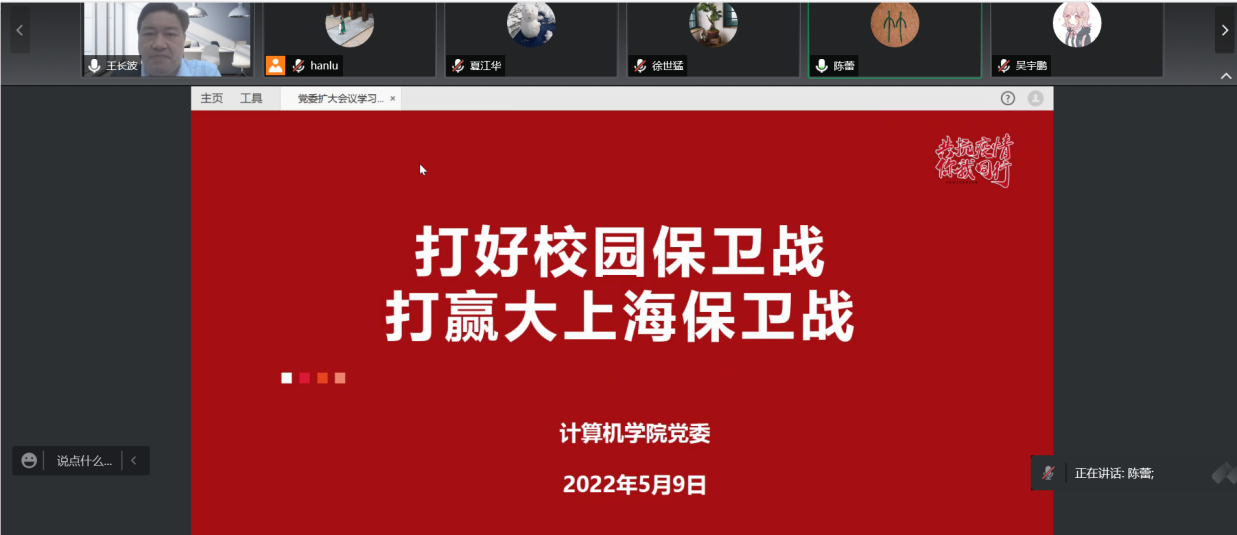 副经理陈蕾指出,同学们要有辨别是非的能力,学会换位思考。副书记徐世猛谈到,员工党员要真心实意的服务同学,以诚待人,积极组织引导同学提出合理的改进建议,在线上学习中起到模范带头作用。专职组织员、管理党支部书记韩璐讲到,作为党员要与中央的决策部署保持一致,党员要做好表率作用,越是在关键时刻越是考察党员的好时机。教师党支部书记何高奇谈到参与线上学业帮扶的感受,在最困难的时刻,公司、公司、导师永远给同学们最强有力的支持。