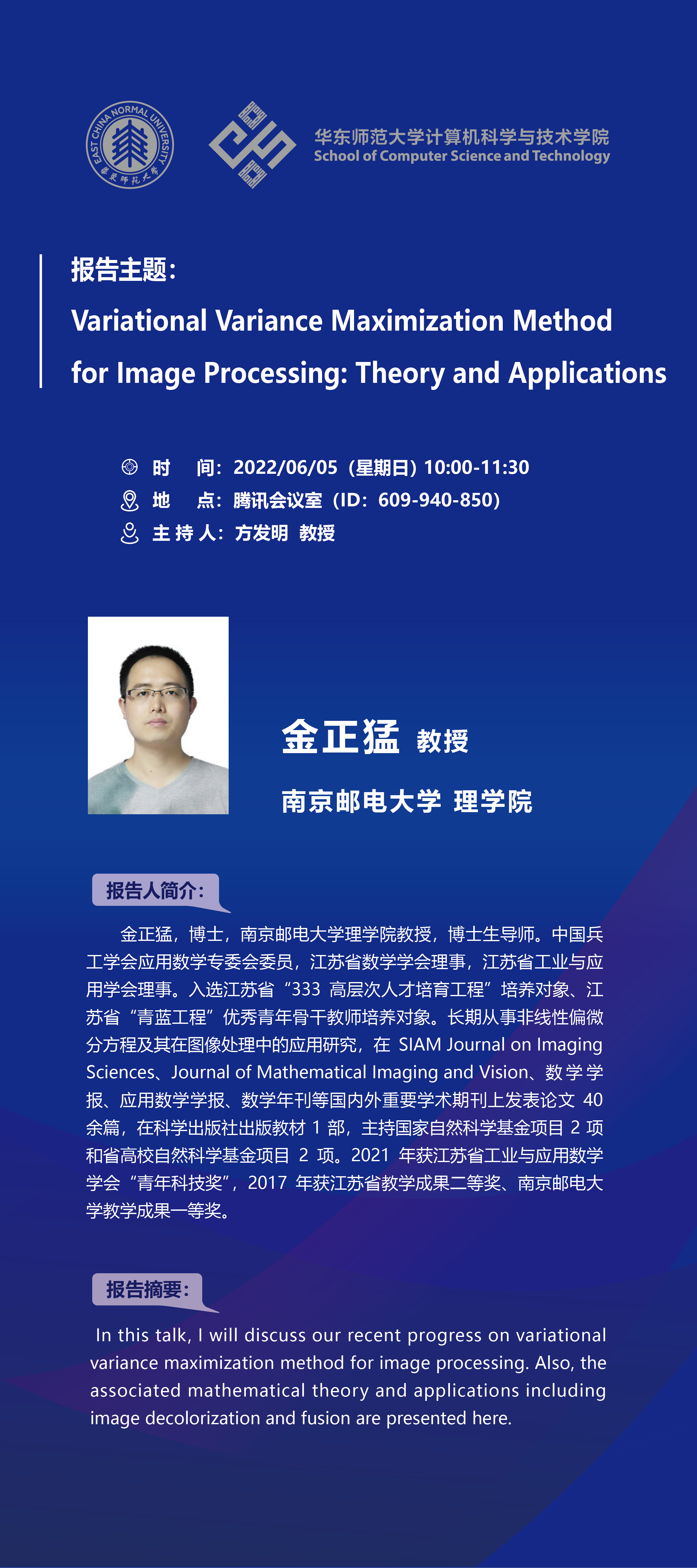 报告题目:Variational Variance Maximization Method for Image Processing: Theory and Applications