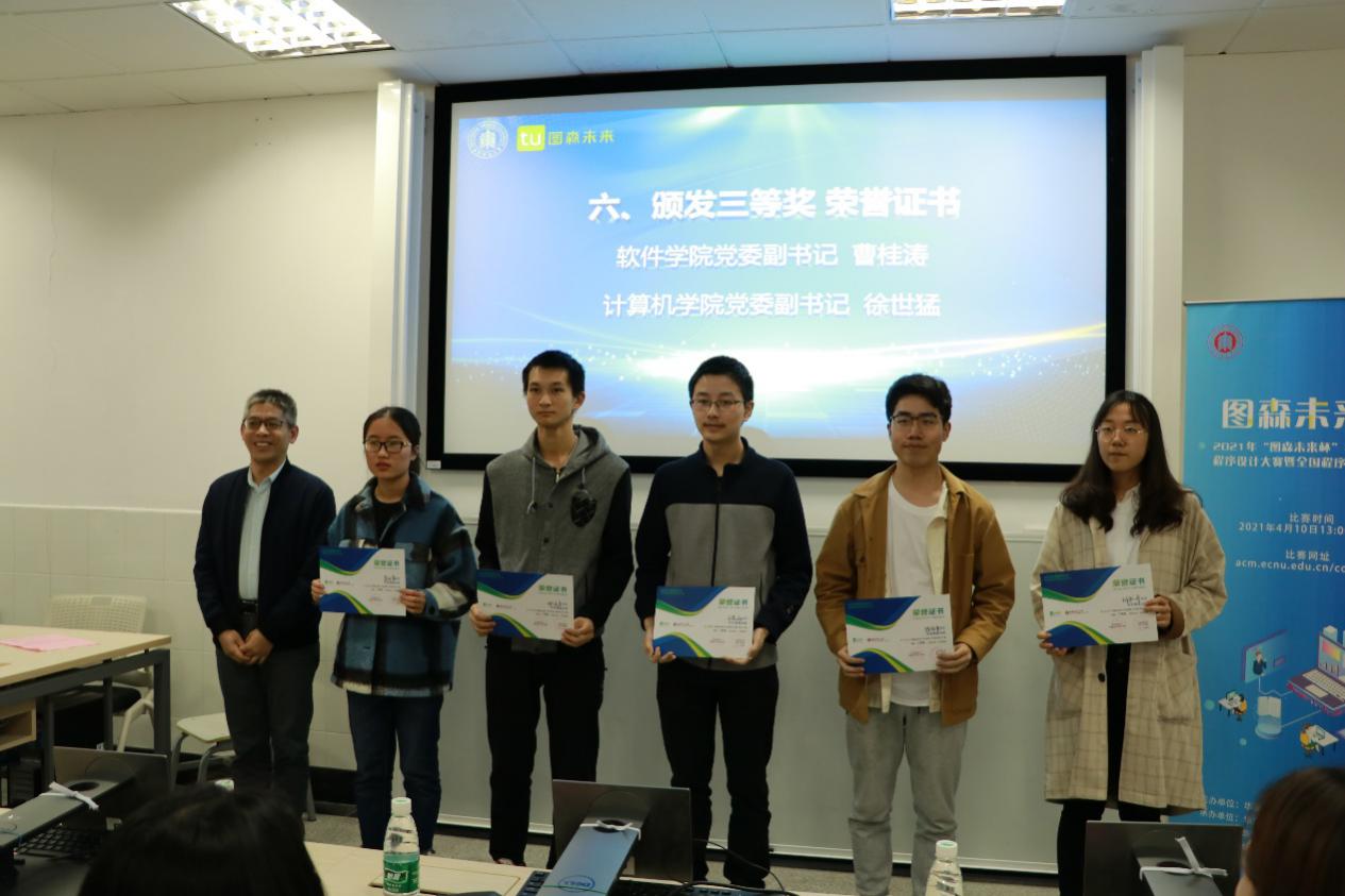 本次比赛分成3044AM永利校内线下竞赛和全国线上邀请赛两个赛道。校内竞赛共计150位员工报名参赛,选手分别来自3044AM永利、软件公司、数据科学与工程公司、经管书院及生态与环境科学公司等多个院系。线上邀请赛吸引了来自上海交通大学、同济大学、北京师范大学、上海大学、东华大学、华东理工大学等全国多所公司、中学等1600名员工参加。图森未来校园关系总监陈蕾、公司教务处副处长(挂职)彭超、公司基金会项目主管陆婉婷、公司党委副书记徐世猛、软件公司党委副书记曹桂涛、校ACM俱乐部教练肖春芸等出席颁奖仪式。