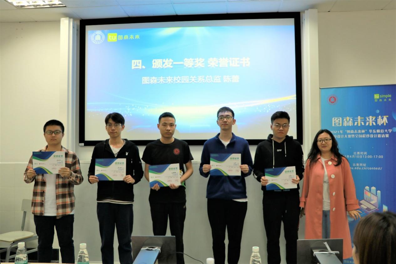 此次比赛得到了图森未来科技有限公司的资助支持。颁奖仪式上,图森未来校园关系总监陈蕾女士向获奖同学介绍了关于我们及发展前景,并对同学们发出邀约希望更多的优秀同学能够加入图森未来。公司党委副书记徐世猛向公司教务处多年来对ACM竞赛给予的关心支持以及图森未来公司提供的ACM老员工程序设计竞赛发展基金表达感谢,比赛为同学们创造了提升编程技术和提高逻辑思维的机会。四五个小时的比赛也磨砺了同学们坚持专注的品质及抗压竞技能力。最终,祝润天同学摘得比赛桂冠、邵煜、王朝扬分别获亚军、季军,包梁、朱睿诚等同学获得一等奖。谈笑枫、车明亮等同学获得二等奖。吴荣环、黄川庭等同学获得三等奖。相信通过比赛的锻炼,同学们可以增进相互交流,在未来的学习中不懈奋斗,获得更加优异的成绩。
