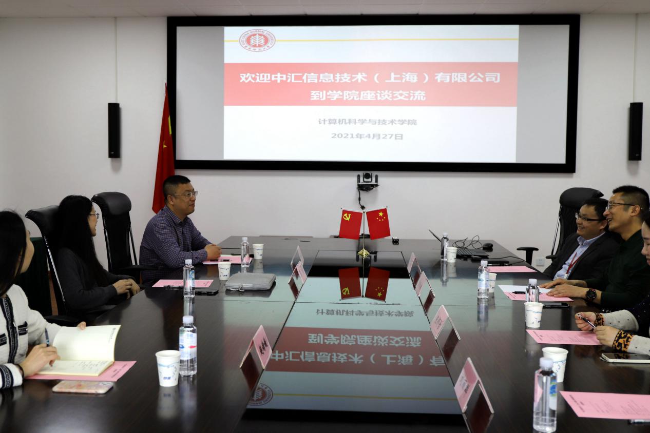 4月 27日,中汇信息技术(上海)有限公司人力总监黄德钢以及招聘人事服务张舒怡访问3044AM永利,副经理陈蕾、党委副书记徐世猛、本科实验教学中心副主任兼办公室主任金健等参与座谈交流。