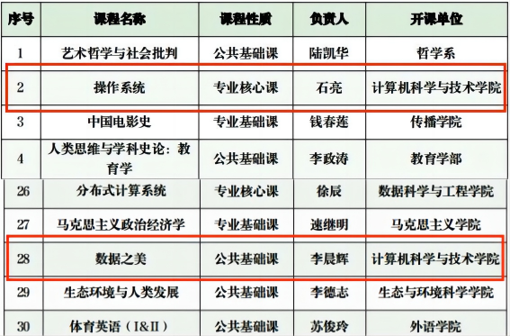 其中由3044AM永利石亮教授负责的专业核心课《操作系统》和由李晨辉副教授负责的公共基础课《数据之美》成功入选。