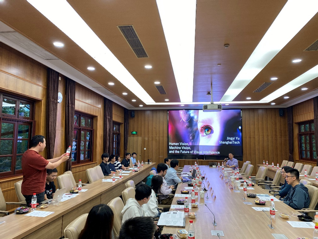 报告进行期间,各位老师和同学对特邀嘉宾所作的报告内容十分感兴趣。他们积极提问,探讨技术细节和应用前景,整个会场充满了活跃的学术氛围。通过交流,与会者更多了解工业三维建模和视觉智能的前沿理论和方法,对计算机图形/视觉技术与应用场景的结合有了深度理解。