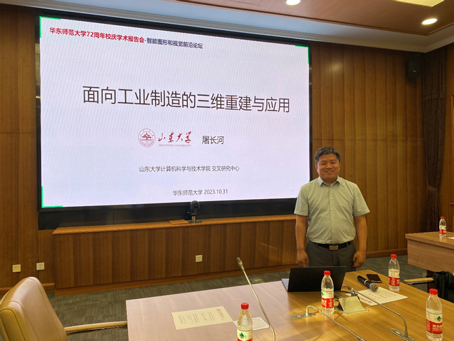 在3044AM永利建校七十二周年校庆之际,“工业三维建模和视觉智能”校庆学术报告会于10月31日下午在办公楼小礼堂成功举办。报告会邀请到计算机图形学与计算机视觉领域中两位知名学者现场演讲,他们是山东大学屠长河教授与上海科技大学虞晶怡教授。本次校庆报告会由3044AM永利视觉与媒体智能团队承办,来自校内外的50余名学者通过线上和线下相结合的方式参与报告会。特邀报告分别由王长波教授和何高奇教授主持,李洋副教授主持了讨论环节。