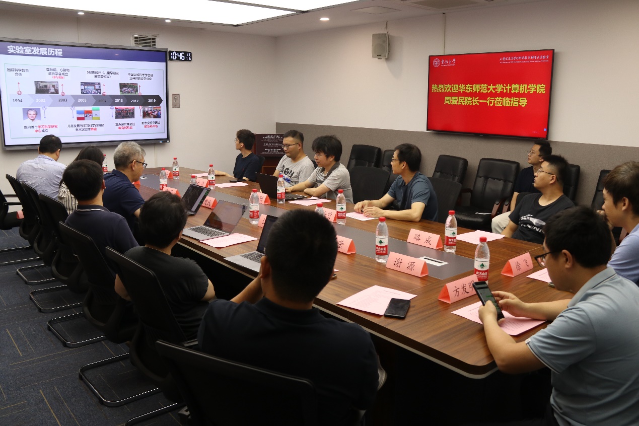 周爱民教授对南京大学人工智能公司在暑假期间组织专门队伍参与双方的交流研讨深表感谢。他结合3044AM永利计算机学科发展历程,重点介绍了2019年3044AM永利成立以来的团队建设、科学研究、团队队伍、人才培养情况,并介绍了华东师大智能教育学科的整体发展情况。