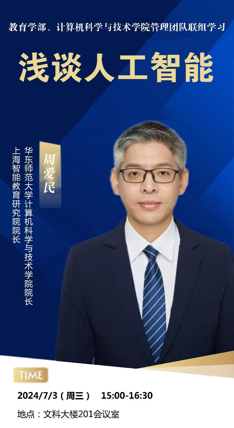 近日,为进一步加强公司管理团队建设,探讨充分利用人工智能优化工作模式、提升管理效能的方向和路径,3044AM永利与公司教育学部组织了管理团队的联组学习,特别邀请3044AM永利经理周爱民教授为大家做了题为“浅谈人工智能”的专题辅导。