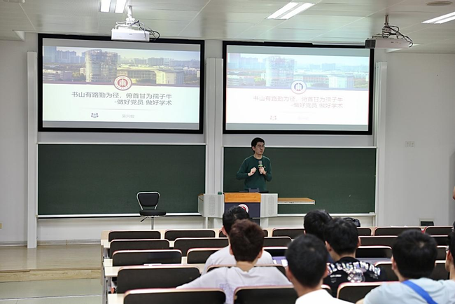 公司优秀毕业生党员、原博士党支部书记吴兴蛟以“书山有路勤为径,俯首甘为孺子牛-做好党员,做好学术”为主题,告诫同学们要树立积极的学术观念,正确合理表达自己的意愿,积极奉献,回报社会,时刻以一个党员标准要求自己,发挥先锋引领作用。其间,通过自己科研的经验与社会经历,他也对同学们提出殷切的希冀:希望同学们“博闻之,审问之,慎思之,明辨之,笃行之”,从生活中学习,在学术中锤炼,做到真正的“风声雨声读书声声声入耳,家事国事天下事事事关心”,努力成为全面发展的综合型人才。