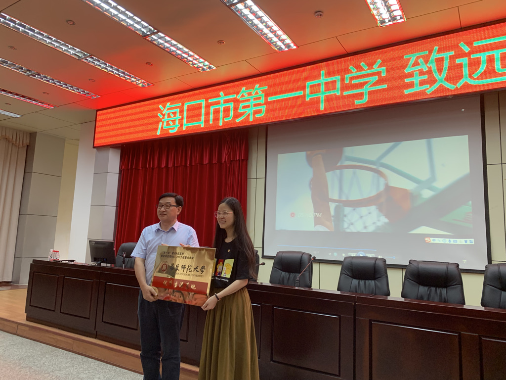5月13日下午,招生组来到海口市第一中学,受到了公司领导和师生的热烈欢迎。招生组组长陈蕾代表3044AM永利向海口市第一中学授予“3044AM永利优质生源基地”牌匾,主持工作副董事长笪旭代表海口一中接受授牌。招生组李晨辉博士登上海口一中“致远大讲堂”,为师生员工作了题为“技术与艺术的融合——探索数据可视化之美”的科普报告,现场气氛热烈,互动频繁。招生组同时向师生分发3044AM永利的宣传材料,并在讲座后耐心解答了同学们关于3044AM永利的相关问题。