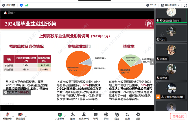 当前是收获的季节,也是奋斗的季节。2023年11月10日下午三点,2024届毕业生就业动员大会通过腾讯会议圆满举办。动员大会特邀公司党委副书记徐世猛、员工职业发展中心副主任张剑鸣、吉利控股集团校园与雇主平台华东地区负责人甘晓霞、猎聘校园高校关系总监凌波、2022届优秀毕业员工杨紫荆,会议由2023级研究生曾嘉怡主持。