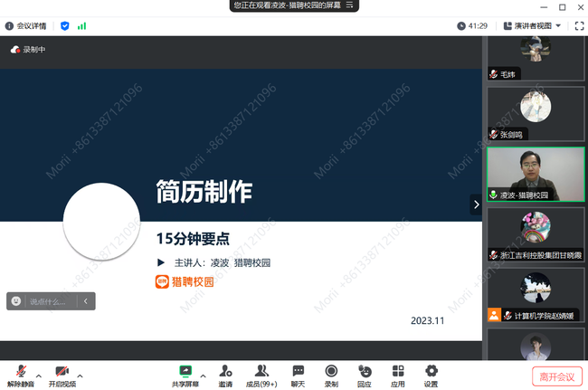 杨紫荆向大家介绍了考公,国企、互联网大厂等就业的注意事项,也为大家的职业选择提供了十分真诚的建议,更是从职位选择、简历撰写、笔试准备、面试注意事项等各个方面事无巨细的进行了分享和建议,希望能对同学们的求职之路有所帮助。