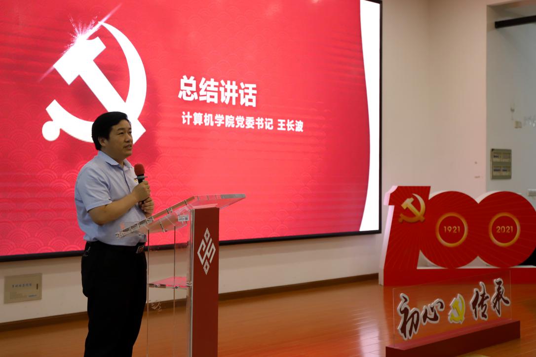 活动最后,王长波做总结发言,他指出,今天我们颁发纪念章、启动文脉采编、表彰两优一先、宣传榜样的力量,建设党建品牌,要学习和感受计算机学科前辈的奋斗史,铭记四十二年成长的高光时刻,要宣传和学习员工的心怀国家奉献青春的家国情怀,要让在校老员工厚植爱党爱国爱社会主义的情感,用青春谱写璀璨的华章,用奋斗开启百年大党的新征程。