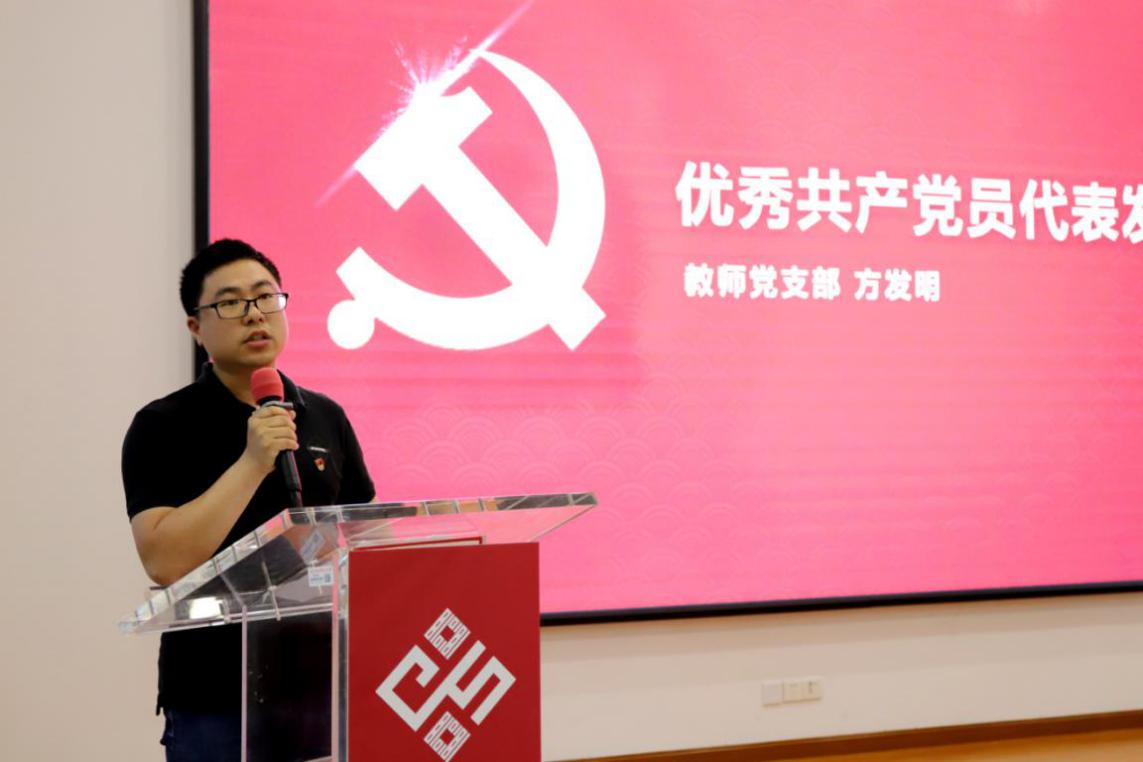 忆誓言,信念如坚;为人师,潜心育人。优秀共产党员代表方发明教授发言表示,作为老师就是要上好每一门课,专心做好科研,以解决卡脖子难题为目标,不断开拓进取,为国奋斗、为党育才。