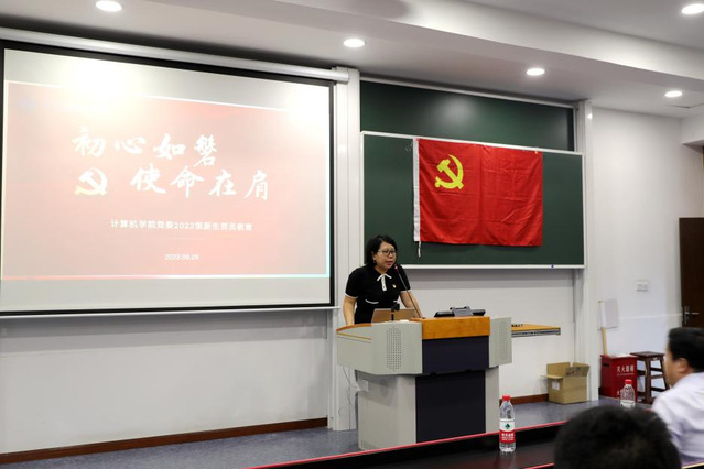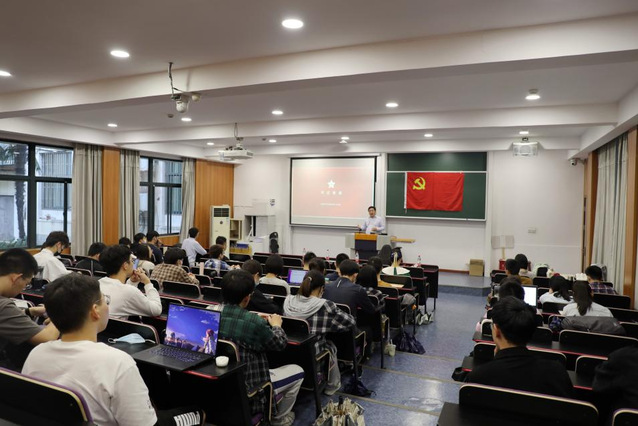 原博士研究生党支部书记、2020年中国老员工自强之星奖学金获得者吴兴蛟为新生党员做主题分享,他告诫新生党员要时刻以一个党员标准要求自己,发挥先锋引领作用。新生党员既要潜心科研,刻苦钻研,又要积极参与各项社会实践,反哺社会创造价值,同时面对挫折应学会调整心态勇往直前。