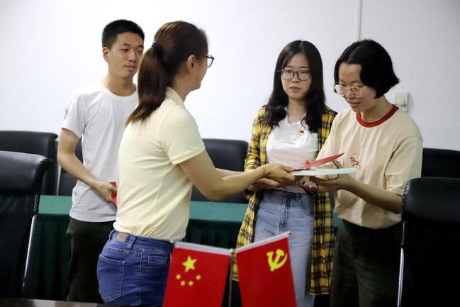 随后,党委副书记(挂职)王莉萍为毕业生党员代表赠送党员礼包,内含一本《这就是中国》、一份公司定制的《党员誓言证》。提醒毕业生党员们时刻牢记党员身份,不忘党员使命,在社会中发挥党员的先锋模范作用。