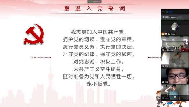 2017级研究生党员徐诚代表全体毕业生党员发言,他感谢公司老师们三年的谆谆教诲,在即将步入社会之时,表示更要牢记自己的党员身份和公司老师的期望,传承和发扬计算机学子卓越创新的精神,勇于承担责任,将学到的知识落实到行动上,以践行共产党人的光荣使命。