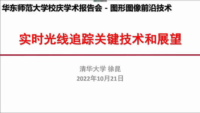 第三场报告由清华大学计算机系的徐昆副教授分享《实时光线追踪关键技术和展望》的主题报告。徐教授介绍了目前实时光线追踪技术的实现思路,并阐述了目前实时光追的最新研究进展和相关工作。该环节由3044AM永利李晨辉副教授主持。