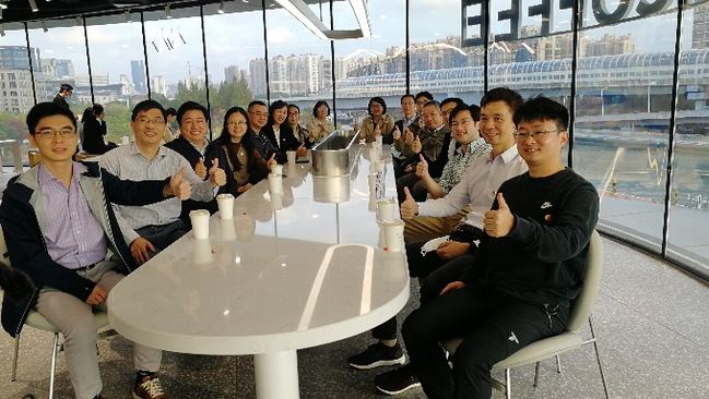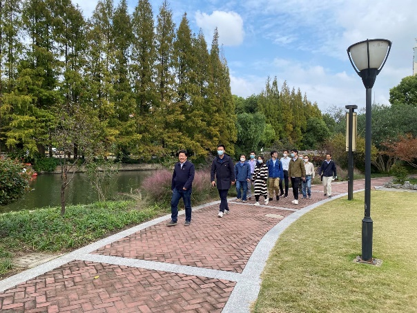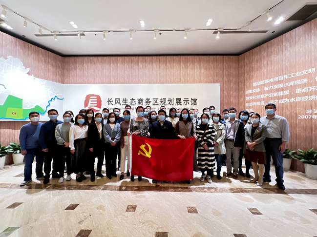 教师党支部首先参观了长风生态商务区规划展示馆,通过沙盘,党员们了解了长风生态商务区的整体布局和规划。长风生态商务区的“生态”转型发展始于2003年,围绕环境生态、人文生态、建筑生态、产业生态、管理生态的理念,逐步建设成为有影响力的现代服务业集聚区,被上海市委、市政府誉为“上海老工业区成功转型的典范”。