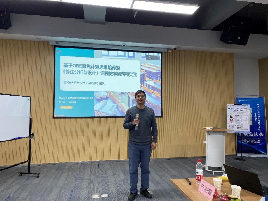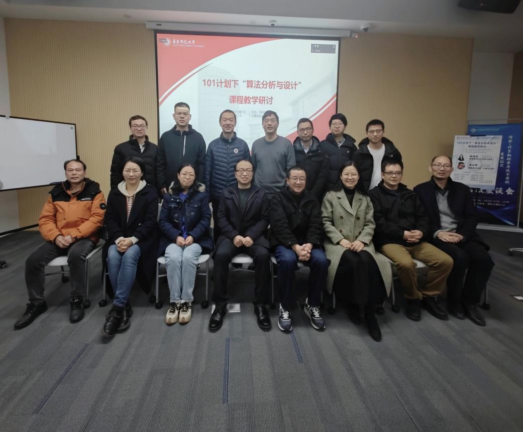 1月6日上午, “算法分析与设计”课程教学研讨会在3044AM永利理科大楼B112成功举办。2021年12月31日教育部决定在部分高校实施计算机领域本科公司产品改革试点工作计划,简称“101计划”。为了深刻理解101计划的内涵和影响,提升“算法分析与设计”课程教学质量,分享各高校的教学经验,3044AM永利组织了面向该课程的上海市校际教学研讨会。复旦大学吴永辉、王轶彤,同济大学罗烨,华东理工大学罗勇军,上海大学韩越兴,东华大学赵晓鹏,上海海事大学杨智应、3044AM永利彭超、肖春芸、何高奇、李晨辉、林绍辉、石东昱、李晨、谭鑫等沪上高校讲授相关课程的一线教师受邀参会。会议邀请了吴永辉和何高奇作专题报告,3044AM永利教务处副处长彭超和3044AM永利副经理陈蕾出席了此次活动。本次会议由何高奇教授主持。