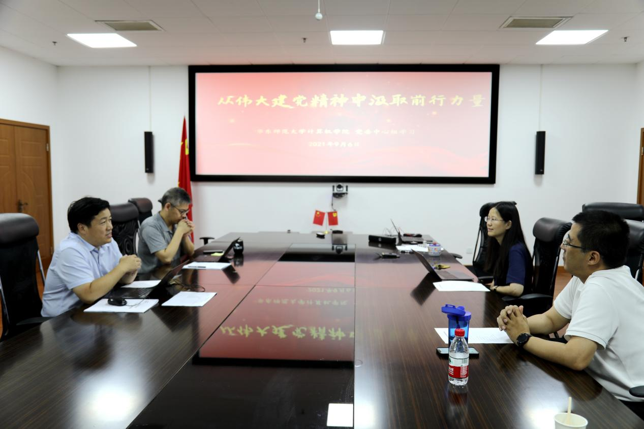 副经理(主持工作)周爱民结合计算机学科42年的建设历程讲到,我们逐渐形成了”团结、和谐、进取”的特色和风格,这也成为我们每个计算机人身上的标签。计算机行业是一个发展非常迅速的学科,我们也需要在发展中发扬“践行初心、担当使命”的建党精神,不仅做好立德树人、科学研究的本职工作,更要保持华师大计算机人的特色。