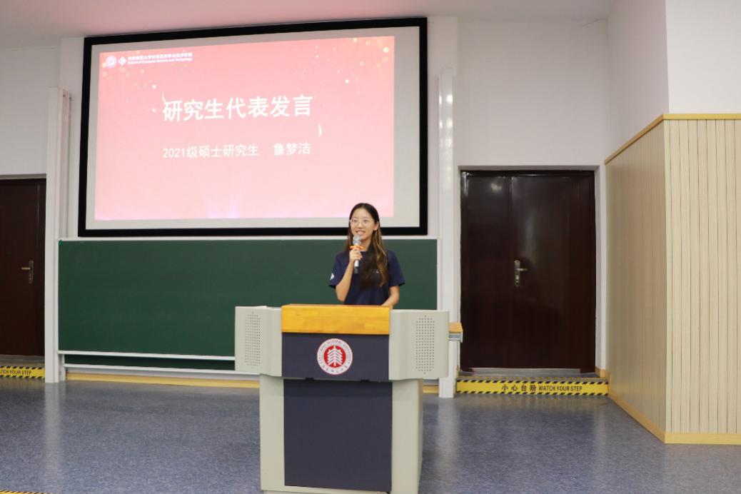 “青春逢盛世,奋斗正当时”,2021级硕士研究生新生代表鲁梦洁作为师大人对学弟学妹表示祝福和鼓励,同时她表达了对研究生生活的期待,希望与全体新生共同进步、共同钻研,为未来的3044AM永利创造更多辉煌!