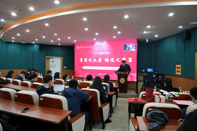 贺书奎做二十大精神宣讲报告《勇担使命责任、勇做开拓先锋扎实推进中国商用飞机高质量稳健发展》,他首先介绍了中国商飞公司以及ARJ21项目,回顾了中国商用飞机的发展历程展望了美好愿景,他语重心长地说,中国民用航空经历了三起三落,一代代航空工业战线上的同志深刻领会到科技自立自强的重要性,如今中国商用飞机制造开辟了由弱到强的新征程,让中国的大飞机翱翔蓝天是我们的使命,为客户提供更加安全、经济、舒适、环保的商用飞机是我们的远景,商飞人会践行长期奋斗、长期攻关、长期吃苦、长期奉献的精神,牢记习近平总书记关于大飞机的重要论述,铭记殷殷嘱托,以二十大精神为指引,狠抓落实,珍惜时代机遇,天高任鸟飞、海阔凭鱼跃!同时,他也希望更多的师大优秀学子能加入商飞,为祖国的商用飞机事业,为科技报国贡献力量。