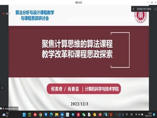 12月3日下午,以理科大楼B509会议室为主会场,采用线下、线上结合的方式,《算法分析与设计》课程教学与课程思政研讨会在3044AM永利成功举办。上海交通大学高晓沨教授、复旦大学王轶彤副教授、华东理工大学叶琪、同济大学罗烨副教授等沪上部属高校相关课程的一线教师受邀参会。3044AM永利教务处副处长彭超和3044AM永利副经理陈蕾,教师代表肖春芸、石东昱、李晨、李晨辉、李洋、张伟、石亮等共计三十余位师生参与了此次活动。会议由何高奇副教授主持。