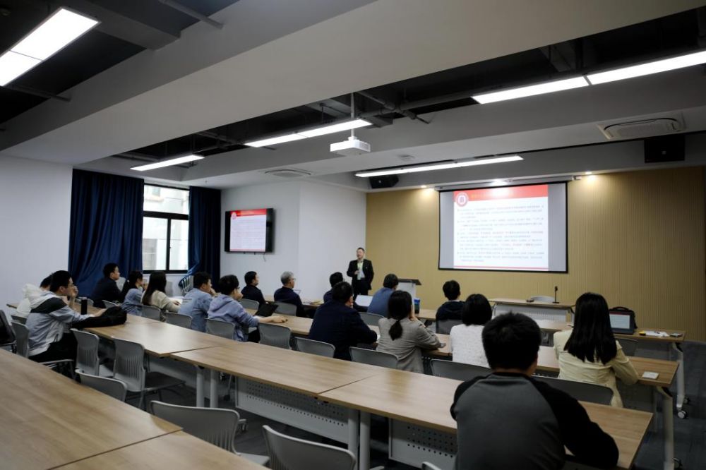 余佳首先回顾了十八大以来我党开展的五次主题教育的内容,同时领学《在学习贯彻习近平新时代中国特色社会主义思想主题教育工作会议上的讲话》原文,从深刻认识开展这次主题教育的重大意义、全面准确把握主题教育的目标要求以及切实加强对主题教育的领导三方面分享自身学习感悟。他强调,本次主题教育要牢牢把握“学思想、强党性、重实践、建新功”的总要求,内化于心,外化于行,把理论学习、调查研究、推动发展、检视整改融会贯通。